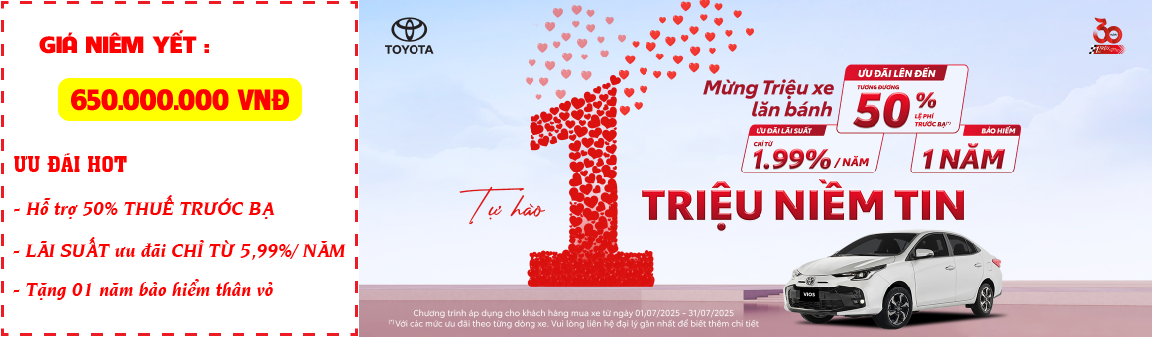 (*) Giá xe Toyota Yaris Cross 2025 đã có thuế VAT và thuế tiêu thụ đặc biệt, chưa trừ khuyến mãi mua xe